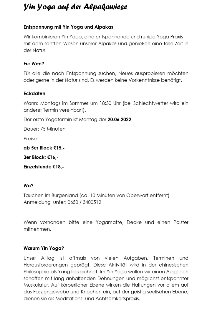 Yin-Yoga auf der Alpakaweide